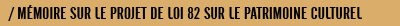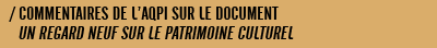 Le 9 juin dernier, Lise Noël et René Binette ont présenté le mémoire de l'Aqpi à Québec dans le cadre de la tournée de consultation pour la révision de la Loi sur les biens culturels du Québec. On peut prendre connaissance du contenu du mémoire de l'Aqpi en consultant le site internet du MCCCFQ :