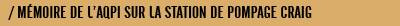 Mémoire présenté par l'Aqpi au Bureau d'audiences publiques sur l'environnement dans le cadre du projet de modernisation de la rue Notre-Dame, à Montréal, le 9 janvier 2002. Ce mémoire porte principalement sur la protection et la mise en valeur de la station de pompage Craig.